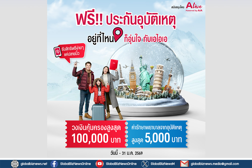 เอไอเอ ประเทศไทย ร่วมมือกับ เอ ไลฟ์ (ALive Powered by AIA) โดยบริษัท เอไอเอ เวลเนส จำกัด ส่งความห่วงใยถึงคนไทยทั่วประเทศในช่วงเทศกาลส่งท้ายปีเก่าต้อนรับปีใหม่ 2569 มอบแคมเปญ “ฟรี!!! ประกันอุบัติเหตุ กรมธรรม์ประกันภัยอุ่นใจข้ามปี” โดยมอบกรมธรรม์ประกันภัยกลุ่มปีใหม่ (ไมโครอินชัวรันส์) ฟรีให้แก่ประชาชนทั่วไป ระยะเวลาคุ้มครองนาน 30 วัน ด้วยวงเงินคุ้มครองชีวิตสูงถึง 100,000 บาทต่อกรมธรรม์ กรณีเสียชีวิตจากอุบัติเหตุ