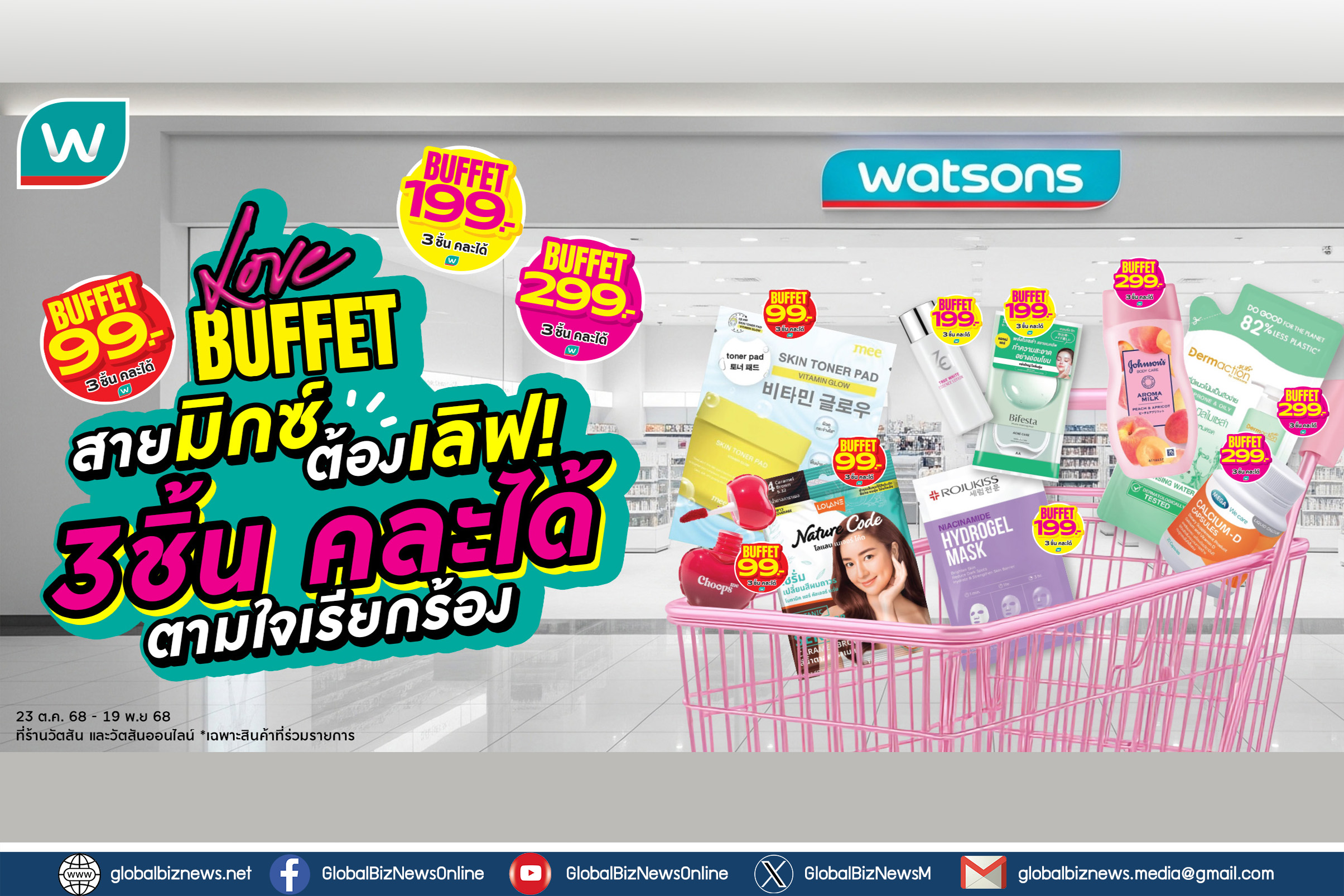 วัตสัน ส่งโปรฯ เด็ด Watsons Buffet #สวรรค์แห่งการตักตวง ชวนชอปสนุก สุดคุ้ม มิกซ์แอนด์แมทช์ คละได้ตามใจชอบ จำนวน 3 ชิ้นในราคาเดียว