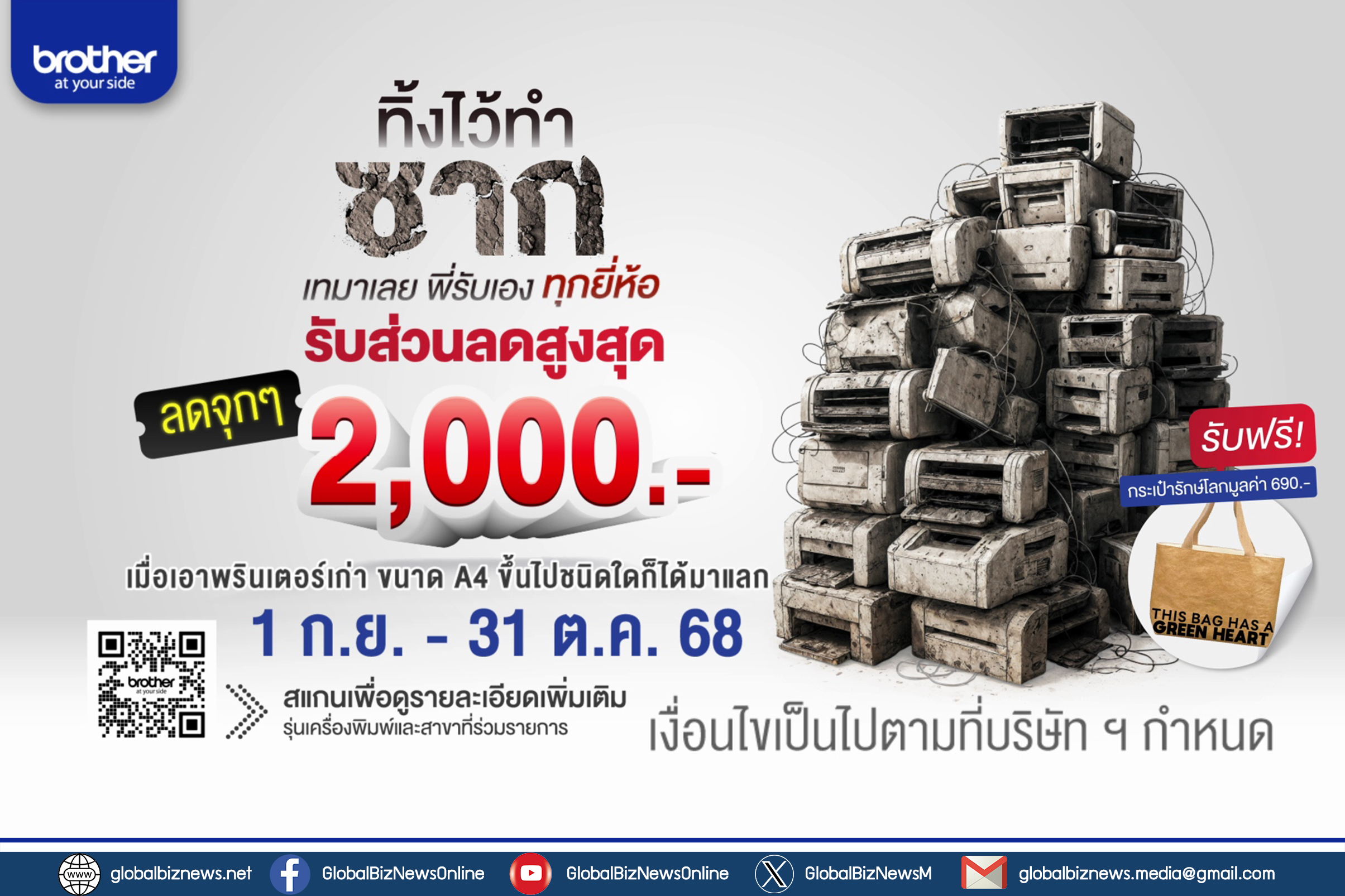 Brother ผู้นำโซลูชั่นด้านการพิมพ์จากประเทศญี่ปุ่น เดินหน้าต่อยอดกลยุทธ์ “Brother All” เพื่อสร้างการเติบโตอย่างสมดุลทั้งด้านธุรกิจ ลูกค้า และสิ่งแวดล้อม พร้อมจับประเด็นปัญหาขยะอิเล็กทรอนิกส์ (e-waste) มาเป็นแรงผลักดันสำคัญ จนเกิดเป็นแคมเปญ “ทิ้งไว้ทำซาก เทมาเลยพี่รับเอง” ที่เปิดโอกาสให้ลูกค้านำเครื่องพิมพ์เก่าขนาด A4 ขึ้นไปทุกรุ่นทุกยี่ห้อมาแลกรับส่วนลดสูงสุด 2,000 บาท