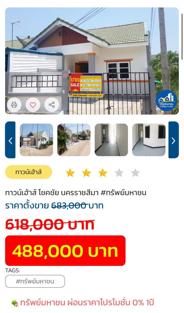 โดย BAM ได้คัดเลือกทรัพย์สินราคาไม่เกิน 3 ล้านบาททั่วประเทศ มาให้กลุ่มคนอยากมีบ้านได้เลือกซื้อทั้งบ้าน ที่ดิน คอนโด อาคารพาณิชย์ ถ้าซื้อเงินสด BAM มีพันธมิตรสถาบันการเงินพร้อมพิจารณาปล่อยสินเชื่อ ถ้าต้องการผ่อนตรงกับ BAM มีโปรจูงใจ “ค่าจองจึ้ง ๆ แค่หนึ่งใบเทา ดอกเบี้ยเบ๊า เบา 0% ปีแรก ผ่อนแบบไม่ต้องแบก เริ่ม 500 บาทต่อเดือนเท่านั้น”