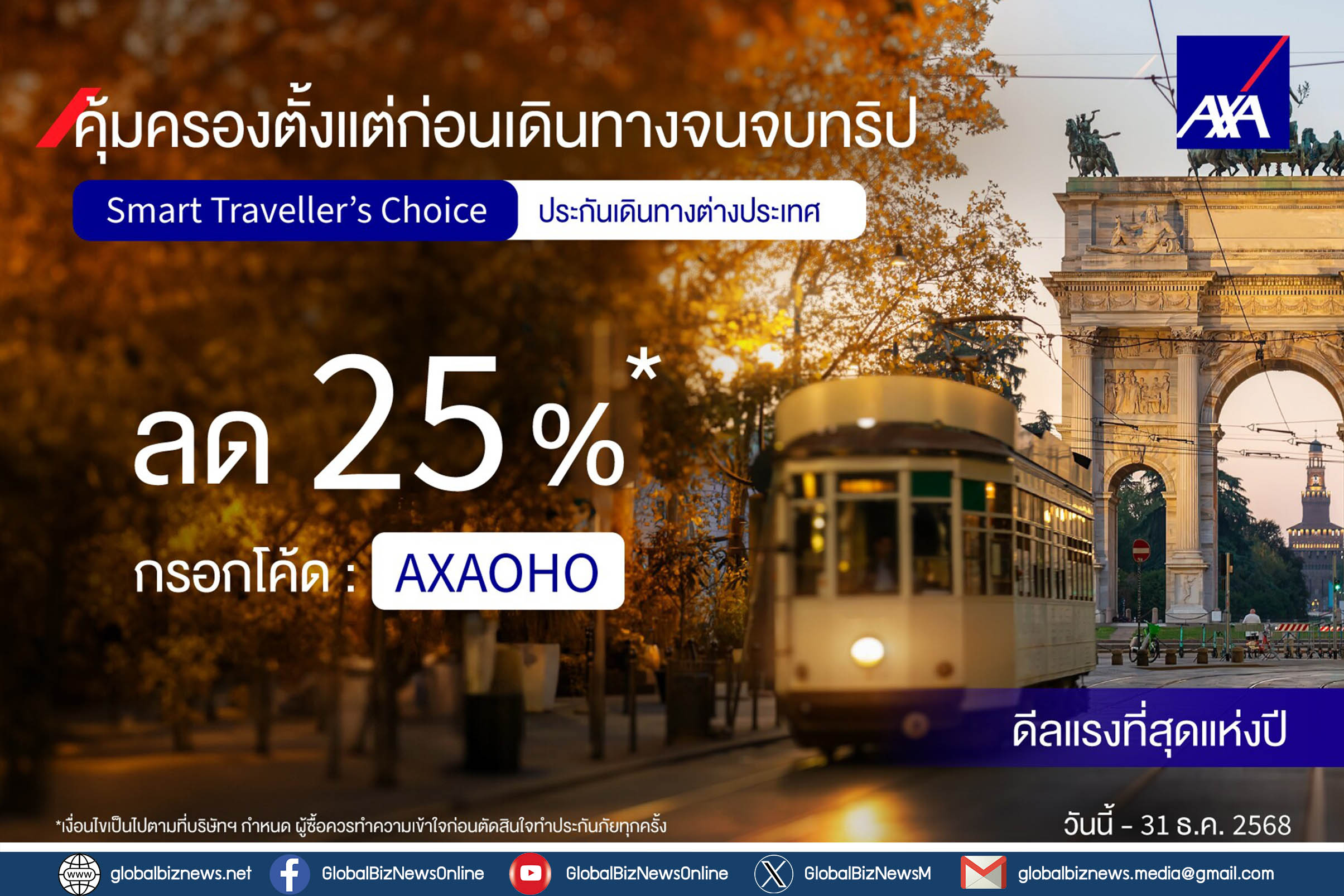 ประกันภัยการเดินทาง AXA Smart Traveller’s Choice พร้อมมอบความมั่นใจให้นักเดินทาง หมดกังวลใจกับเหตุการณ์ไม่คาดฝัน ด้วยประสบการณ์การเดินทางที่ปลอดภัย