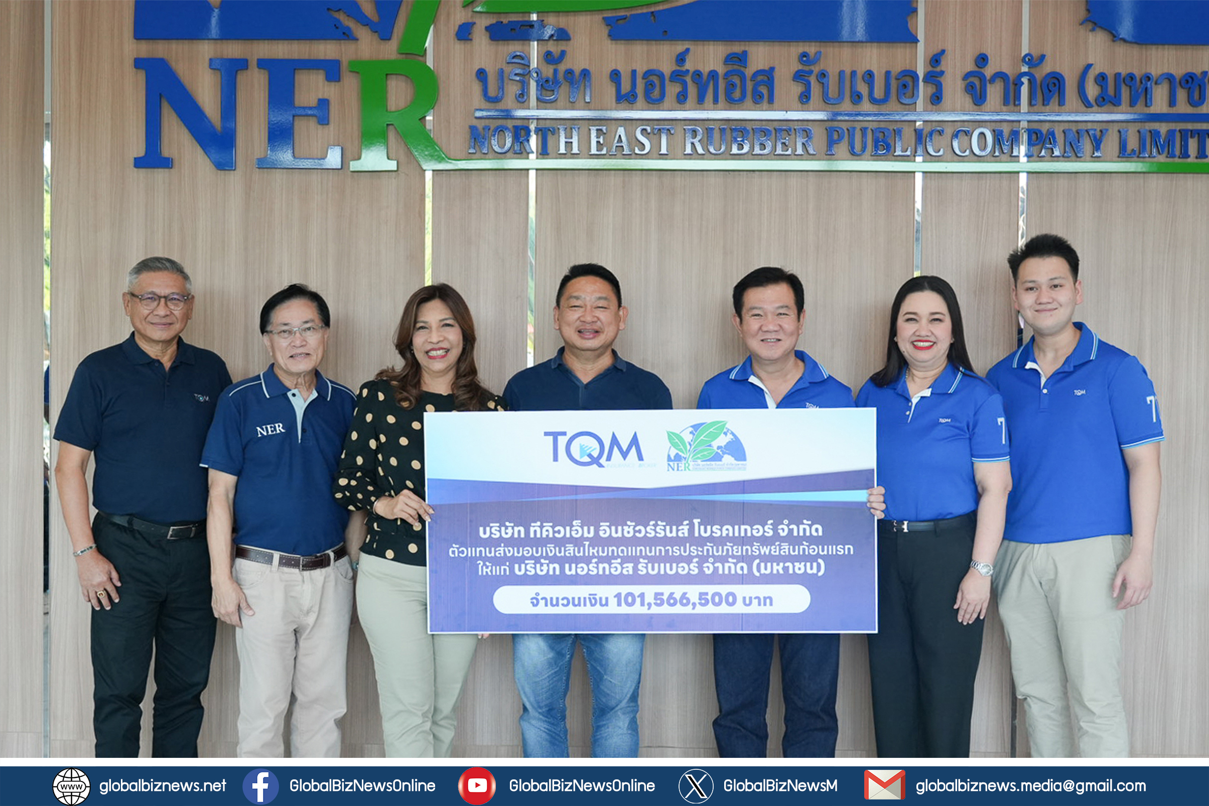 TQM ส่งมอบค่าสินไหมทดแทนก้อนแรก มูลค่า 101,566,500 บาท ให้แก่ บริษัท นอร์ทอีส รับเบอร์ จำกัด (มหาชน) จากกรณีเหตุเพลิงไหม้โกดังเก็บสินค้า