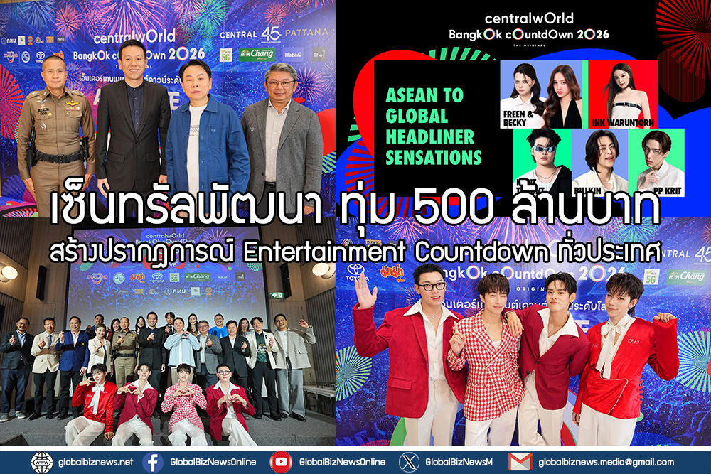 บริษัท เซ็นทรัลพัฒนา จำกัด (มหาชน) เบอร์หนึ่งอสังหาริมทรัพย์ไทยและผู้บริหารศูนย์การค้าเซ็นทรัล 44 สาขาทั่วประเทศ ร่วมกับ การท่องเที่ยวแห่งประเทศไทย และ กรุงเทพมหานคร ประกาศความยิ่งใหญ่ของงาน ‘centralwOrld Bangkok Countdown 2026 The Original – A Tribute To Love’ ณ เซ็นทรัลเวิลด์ Times Square of Asia แลนด์มาร์กเคานต์ดาวน์หนึ่งเดียวใจกลางเมือง และ ‘Thailand Countdown 2026 – Love Unites Us All’ ทุ่มงบกว่า 500 ล้านบาท สร้างปรากฏการณ์เฉลิมฉลองข้ามปี