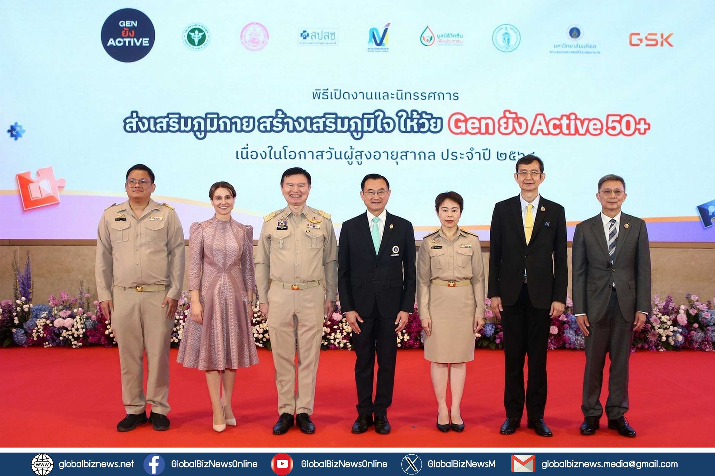 โครงการ Gen ยัง Active 50+ จัดเสวนา “บูรณาการเชิงรุกเพื่อส่งเสริมสุขภาพเชิงป้องกันในระยะยาวของประเทศไทย” ในงาน “ส่งเสริมภูมิกาย สร้างเสริมภูมิใจ ให้วัย Gen ยัง Active 50+” เนื่องในวันผู้สูงอายุสากล (International Day of Older Persons) ระดมผู้กำหนดนโยบายสุขภาพระดับประเทศ กรมควบคุมโรค กรมอนามัย สถาบันวัคซีนแห่งชาติ สำนักงานหลักประกันสุขภาพแห่งชาติ กรุงเทพมหานคร และคณะแพทยศาสตร์ศิริราชพยาบาล ร่วมแสดงวิสัยทัศน์และแนวทางการขับเคลื่อนระบบสุขภาพไทย ตอบโจทย์ความท้าทายของสังคมสูงวัย เพื่อพัฒนาคุณภาพชีวิตของผู้สูงอายุในประเทศไทยให้ดีขึ้นอย่างยั่งยืน