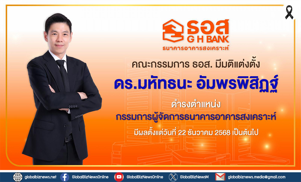 อัครุตม์ สนธยานนท์ ประธานกรรมการธนาคารอาคารสงเคราะห์ (ธอส.) เปิดเผยว่า คณะกรรมการธนาคารในการประชุมวันนี้ (18 ธันวาคม 2568) มีมติแต่งตั้ง ดร.มหัทธนะ อัมพรพิสิฏฐ์ ดำรงตำแหน่งกรรมการผู้จัดการธนาคารอาคารสงเคราะห์ (กรรมการผู้จัดการลำดับที่ 15 ของ ธอส.) โดยความเห็นชอบของรัฐมนตรีว่าการกระทรวงการคลัง และธนาคารแห่งประเทศไทย มีผลตั้งแต่วันที่ 22 ธันวาคม 2568 เป็นต้นไป