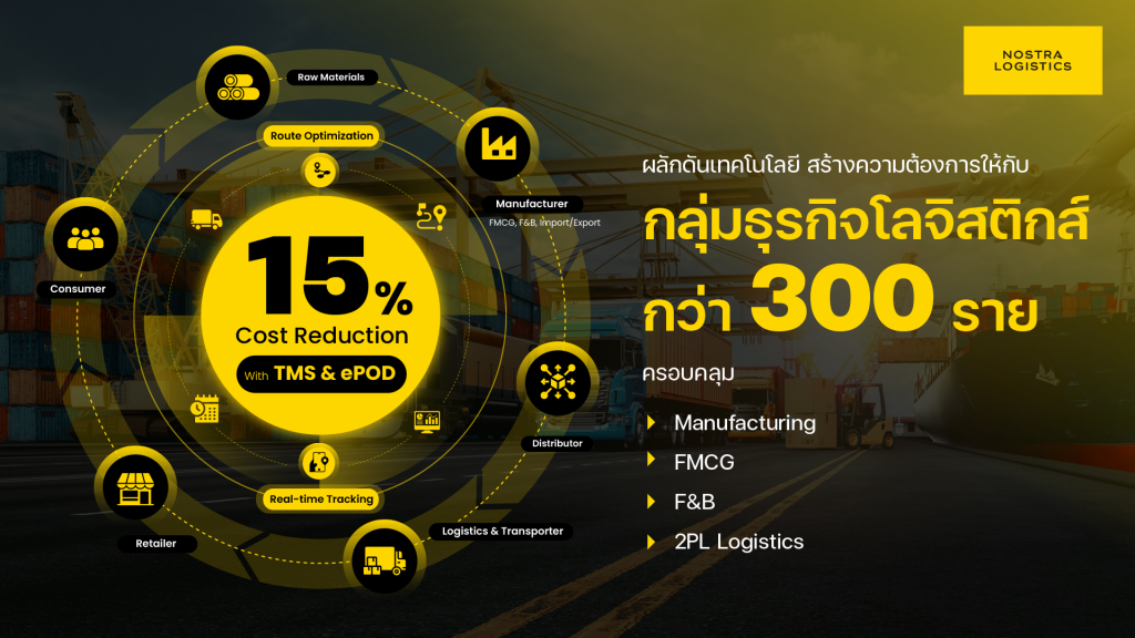 จุดต่างที่ทำให้ NOSTRA LOGISTICS ยืนหนึ่งเป็นผู้นำด้านแพลตฟอร์มเทคโนโลยีขนส่งโลจิสติกส์ของไทยนั้น คือการนำระบบบริหารจัดการขนส่ง TMS (Transportation Management System) ทำงานร่วมกับโมบาย แอปพลิเคชันสำหรับติดตามด้วยมือถือ ePOD (Electronic Proof of Delivery) ลดต้นทุนค่าฮาร์ดแวร์ ยกระดับประสิทธิภาพการทำงาน