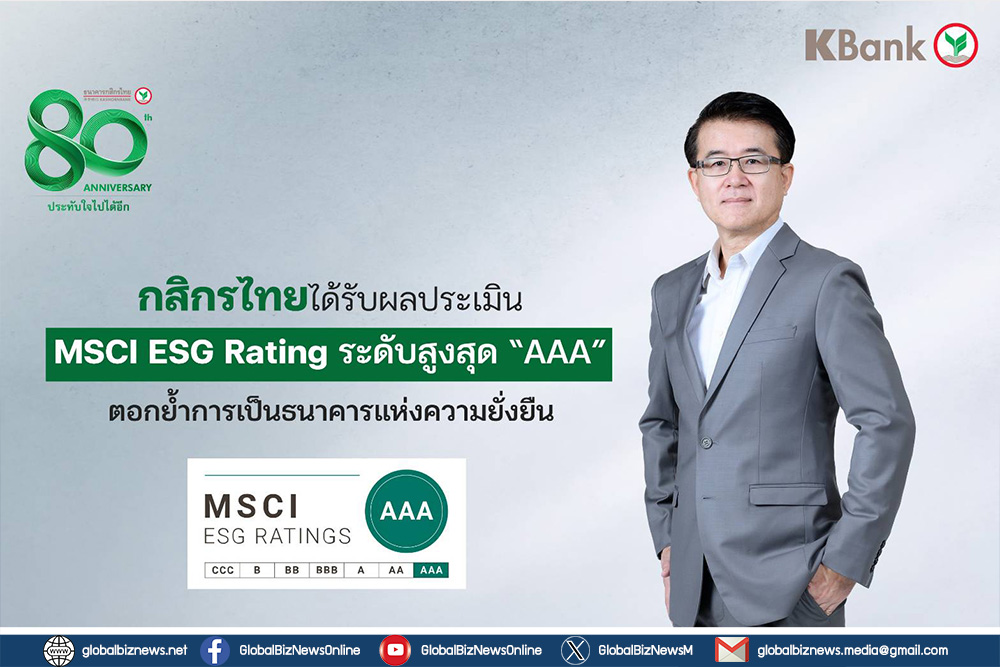 กสิกรไทย ได้รับผลประเมิน MSCI ESG Rating ระดับสูงสุด “AAA” ตอกย้ำการเป็นธนาคารแห่งความยั่งยืน ที่มีการดำเนินงานตามมาตรฐานระดับสากล