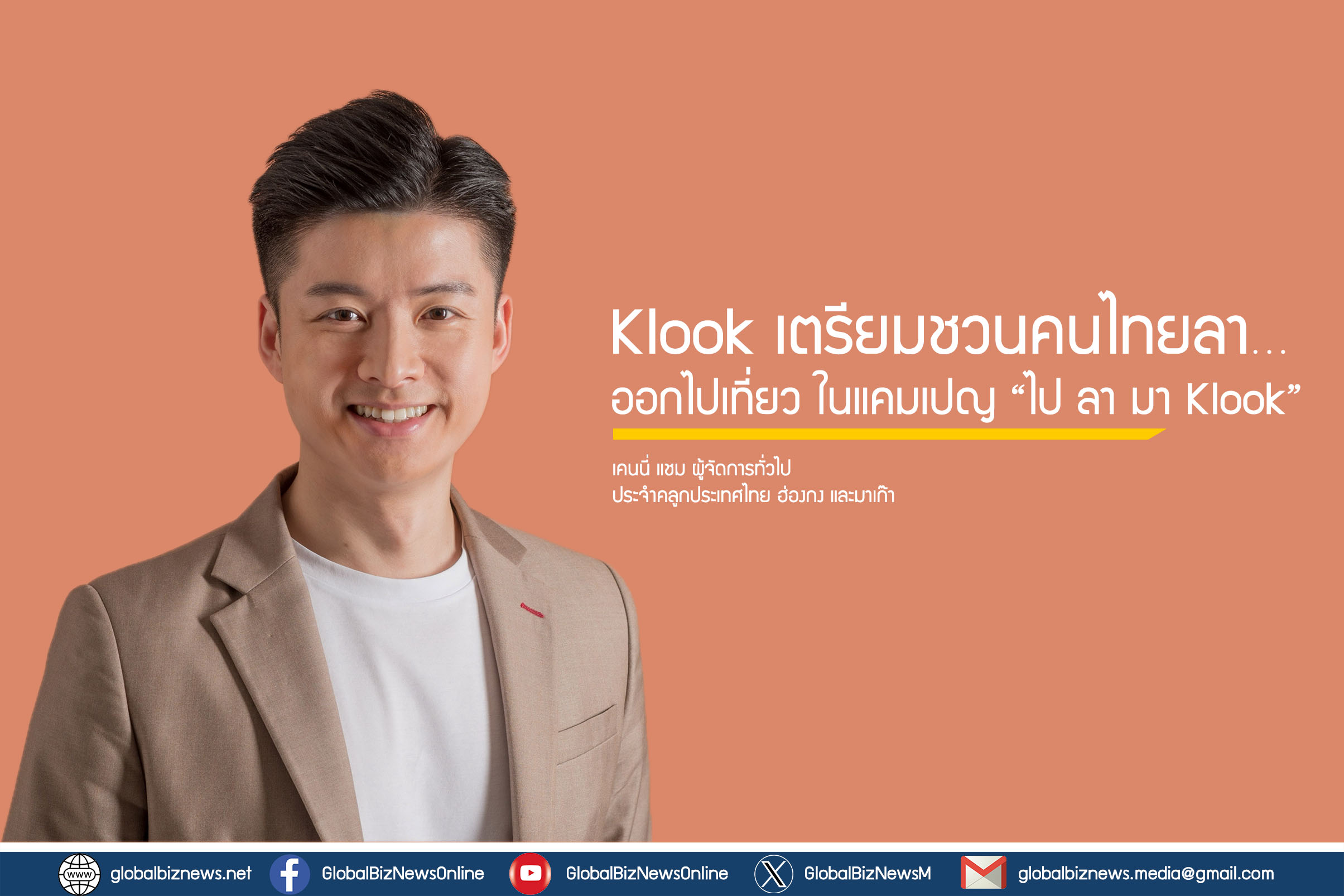 เคนนี่ แชม ผู้จัดการทั่วไป ประจำคลูกประเทศไทย ฮ่องกง และมาเก๊า กล่าวว่า “จากผลสำรวจที่พบทำให้เราเห็นว่า ที่จริงแล้วคนไทยต้องการเดินทางท่องเที่ยวเพื่อผ่อนคลาย ความเครียดจากการทำงาน ภาวะ Burnout  และเป็นการชาร์ตพลังให้ตัวเอง แต่หลายคนยังติดกับดักทางความคิดและความเชื่อที่ทำให้ไม่กล้าออกไปใช้วันลาทั้งที่เป็นสิทธิ์ของตนเอง Klook จึงอยากใช้โอกาสช่วงปลายปี ชวนคุณไปเที่ยวผ่านแคมเปญ ไป มา ลา Klook เพื่อเป็นแรงกระตุ้นให้ทุกคนได้ “อนุญาต” ให้ตัวเองได้หยุดพัก ออกเดินทางเพื่อเติมพลัง และค้นหาแรงบันดาลใจให้ตัวเองอีกครั้ง