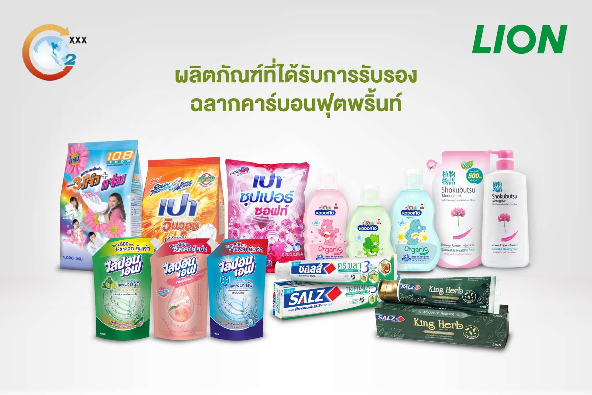 ปัจจุบัน ไลอ้อนมีผลิตภัณฑ์กว่า 17 SKUs ที่ได้รับฉลากลดโลกร้อน อาทิ ไลปอนเอฟ สูตรอนามัย ไลปอนเอฟ สูตรมะกรูด ไลปอนเอฟ เจแปนนีสพีช และไลปอน กลิ่นชามะนาว เป็นต้น ในรูปแบบ “ถุงเติมรีฟิล” และยังเป็นรายแรกในประเทศไทยที่ได้รับฉลากลดโลกร้อน (Carbon Footprint Reduction) ในกลุ่มผลิตภัณฑ์น้ำยาล้างจาน อย่างต่อเนื่อง ตั้งแต่ปี 2014 จนถึง ปัจจุบัน