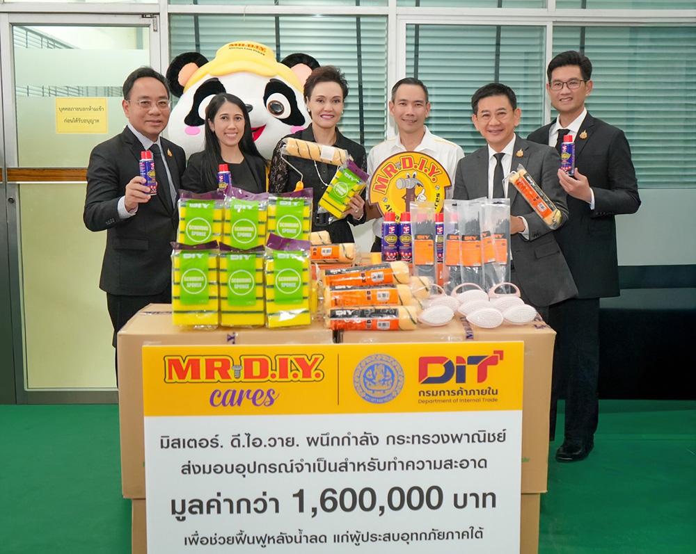 มิสเตอร์. ดี.ไอ.วาย. ผนึกกำลังกระทรวงพาณิชย์ ปันน้ำใจร่วมโครงการ “รวมใจไทย ฟื้นแดนใต้” มอบอุปกรณ์ทำความสะอาด กว่า 15,000 ชิ้น มูลค่ากว่า 1.6 ล้านบาท