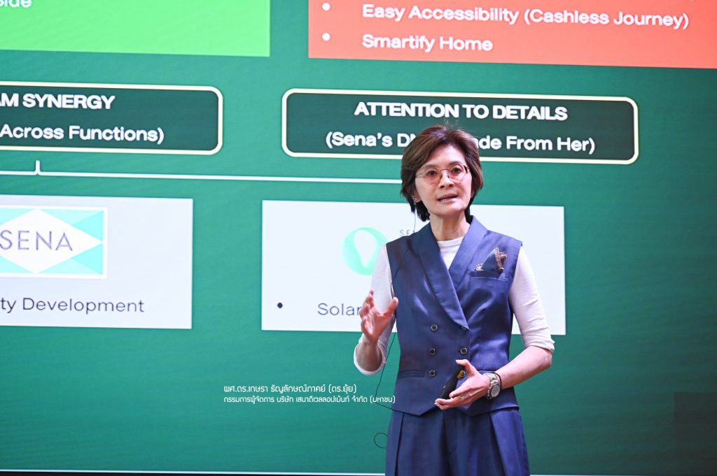 ผศ.ดร.เกษรา ธัญลักษณ์ภาคย์ (ดร.ยุ้ย) กรรมการผู้จัดการ บริษัท เสนาดีเวลลอปเม้นท์ จำกัด (มหาชน) เปิดเผยว่า บริษัทให้ความสำคัญกับการเติบโตบนฐานความต้องการที่แท้จริงของผู้บริโภค (Real Demand) ควบคู่กับการขยายรายได้ประจำ (Recurring Income) เพื่อเสริมความมั่นคง ลดความผันผวน และสร้างเสถียรภาพทางการเงินในระยะยาว