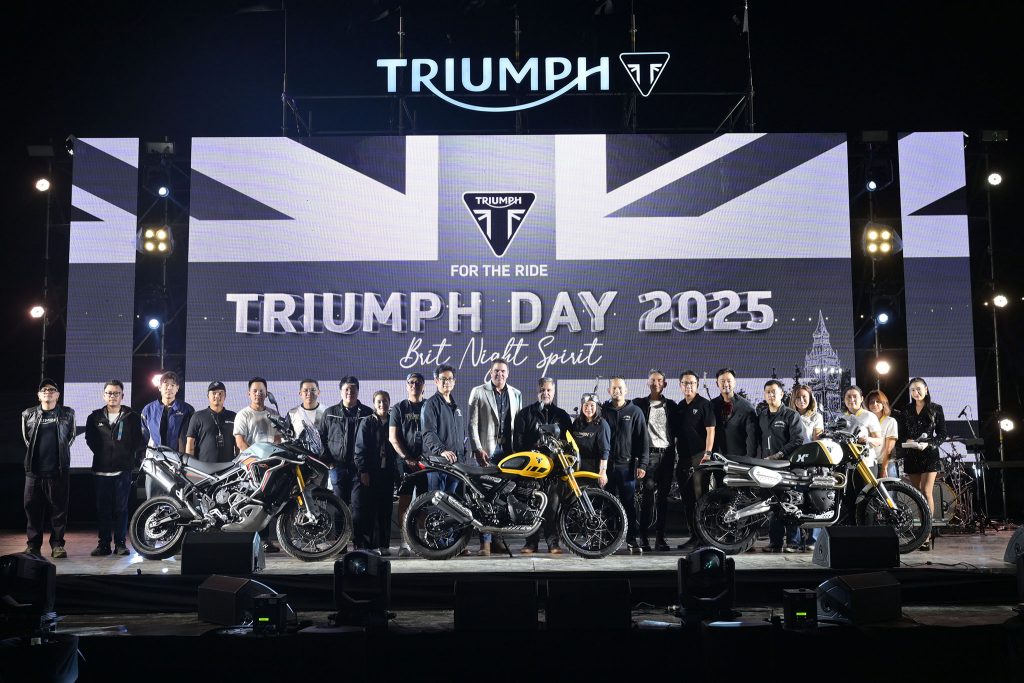 ไทรอัมพ์ มอเตอร์ไซเคิลส์ ผู้ผลิตรถจักรยานยนต์พรีเมียมสัญชาติอังกฤษ จัดงาน “ไทรอัมพ์ เดย์ 2025” (Triumph Day 2025: Brit Night Spirit) คอมมูนิตี้สุดเอ็กซ์คลูซีฟสำหรับแฟนพันธุ์แท้ไทรอัมพ์ ที่ให้ทุกคนได้มาพบปะ พูดคุย และแลกเปลี่ยนประสบการณ์รวมถึงความประทับใจกับผู้ขับขี่ไทรอัมพ์จากทั่วประเทศ พร้อมเฉลิมฉลองความภาคภูมิใจไปด้วยกัน ผ่านการชมนิทรรศการรถจักรยานยนต์ไทรอัมพ์หลากหลายรุ่นตั้งแต่อดีตจนถึงปัจจุบันที่มาพร้อมเรื่องราวและแรงบันดาลใจ