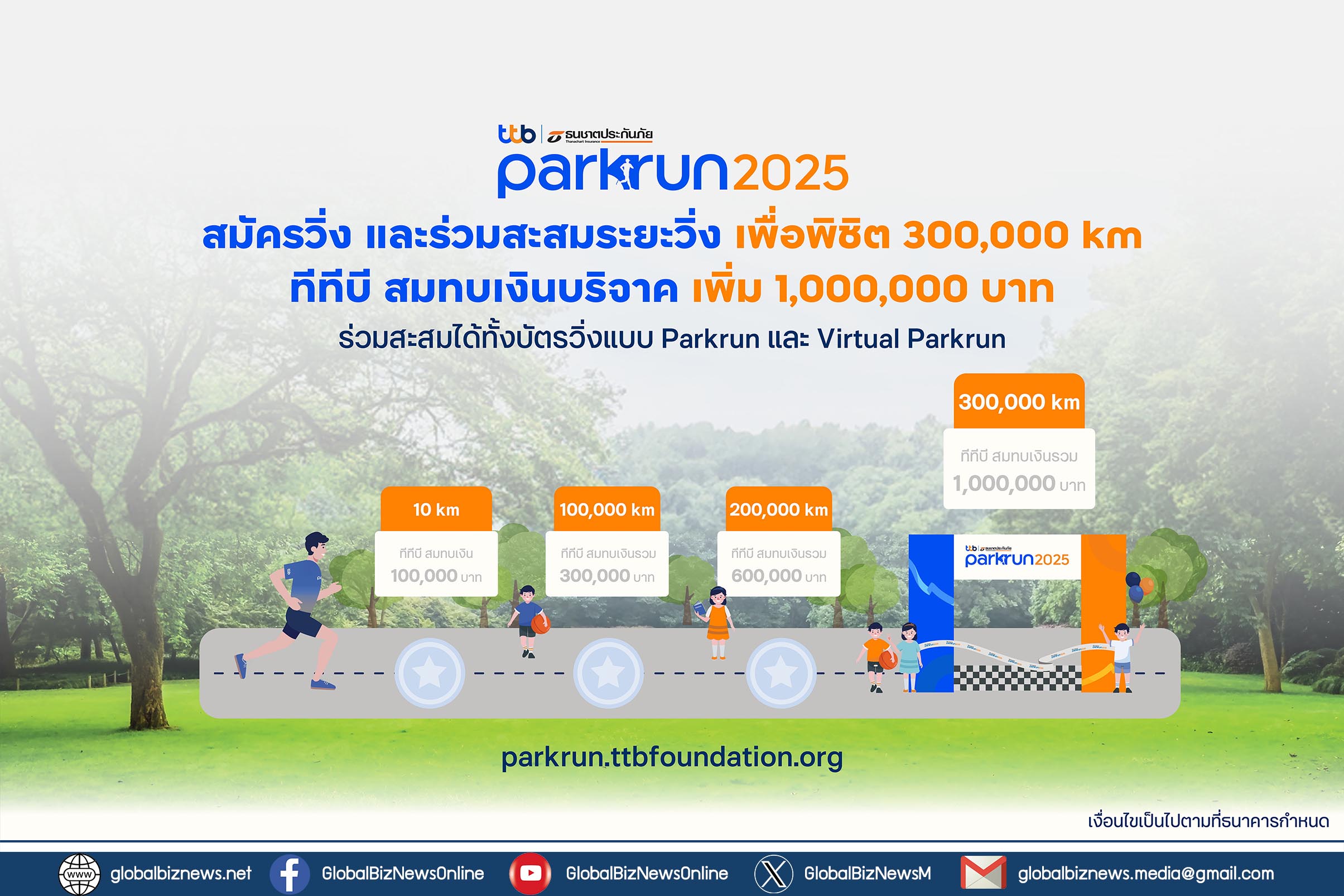 โดยทีทีบีร่วมจะสมทบเงินบริจาครวม 1 ล้านบาท เมื่อผลสะสมระยะทางวิ่งทั้งหมดครบ 300,000 กิโลเมตร ซึ่งนักวิ่งที่ซื้อบัตรวิ่งไปแล้ว ทั้งแบบ Parkrun และ Virtual Parkrun สามารถร่วมส่งผลสะสมระยะทางวิ่งได้บนเว็บไซต์ parkrun.ttbfoundation.org ถึงวันที่ 14 ธันวาคม 2568