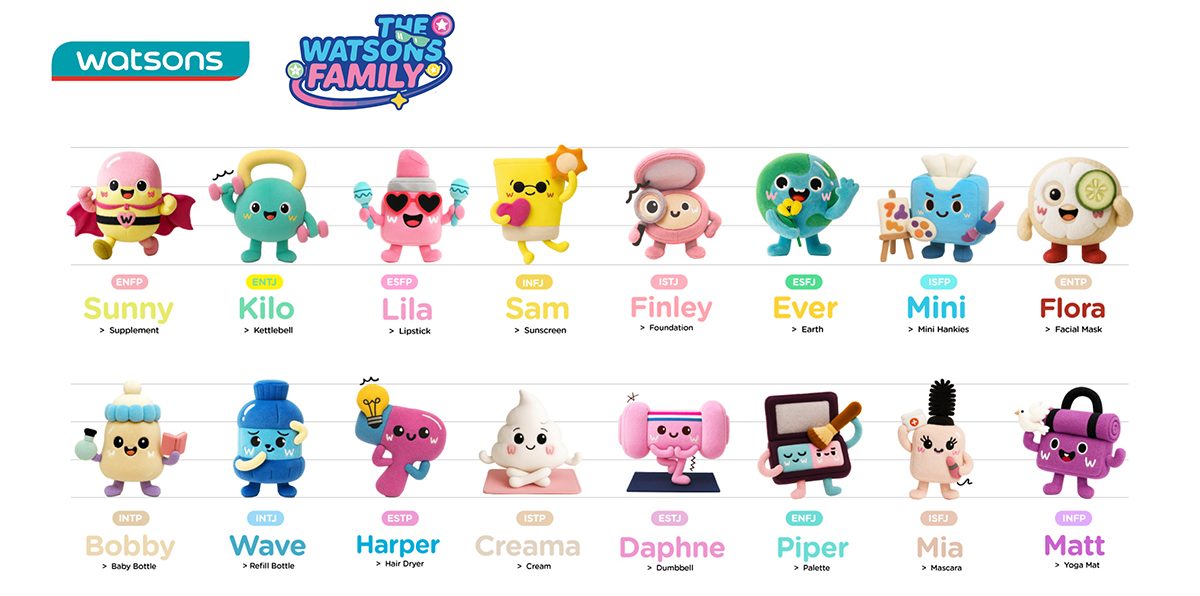 พบกับ The Watsons Family – ตัวละคร 16 คาแรกเตอร์ โดยแต่ละตัวได้รับแรงบันดาลใจจากบุคลิกภาพ MBTI ที่แตกต่างกัน เป็นตัวแทนของความสุขของความงาม สุขภาพ และการดูแลตนเองในแบบที่ทุกคนสามารถเข้าใจได้